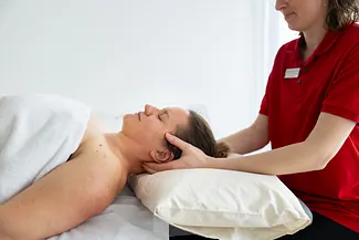 Le traitement par massage débute par un bref entretien. Votre masseur ou masseuse établit alors un bilan médical afin de déterminer vos troubles de manière ciblée. Ensuite, un plan de traitement individuel est élaboré et vous fixez ensemble un objectif : que voulez-vous atteindre grâce au massage ? Souhaitez-vous par exemple ne plus souffrir ou retrouver votre mobilité ? Après cet échange bref mais important, le massage commence.